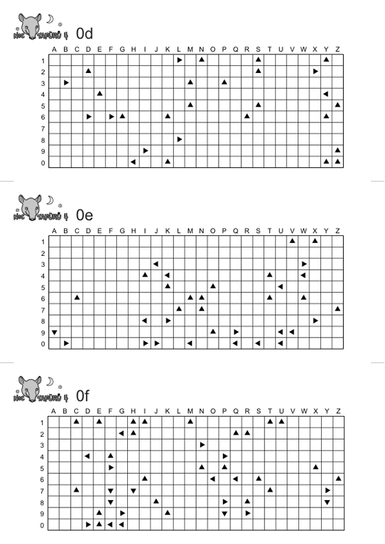 Samotná šifra 0 funguje jako překladová tabulka. Mřížky se šipkami slouží jako překlad souřadnic ze zadání 0a na písmena. Písmeno lze získat tak, že začneme na daných souřadnicích a pokračujeme po šipkách, dokud nás nevyvedou ven z mřížky. K tomu dojde vždy u některého písmene nebo číslice. Úlohu je možné vyřešit i bez toho, abychom měli všechny mřížky, protože počet možných „východů“ z každého políčka je omezený a s každou další získanou mřížkou možností ubývá. Šifru je tak bezpečně možné vyřešit i s pěti mřížkami, ale mělo by to být možné už se třemi.